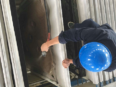 近期,由于水质变化较大,污泥量明显增加,导致污泥池液位持续升高,板框压滤机滤布结垢严重,经过多次水洗酸洗效果不佳,为尽快降低污泥池液位,缓解生产压力,提高板框压滤机的压泥效率,最终经研究由机修人员利用高压水枪逐块进行人工清洗,并对结垢严重的滤布送到化验室进行不同浓度酸浸泡实验,解决板框机滤布结垢问题。