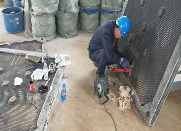 近日,工业污水处理公司使用的板框压滤机出现故障。该机械是台湾卜力斯公司生产的全自动双膜片式压滤机,其“双膜片”决定了该机械“滤板”的使用寿命仅为3至5年。鉴于工业污水处理公司已运行6年之久,膜片已逐渐出现破损漏气的情况,厂家表示无法修复膜片,不予提供技术支持。据悉,公司内2台板框压滤机共配有130块滤板,而每块滤板的采购费用近2万余元,更换费用极高。工业污水处理公司的工作人员深知压滤机在运行中的关键作用,坚持要做“死心眼”为公司省下这笔开销。功夫不负有心人,经过工作人员的反复摸索与研究,通过原始汽车补胎技术,利用网上多方搜寻到的补胎机,用每块约100元的成本完成了部分滤板的修复。