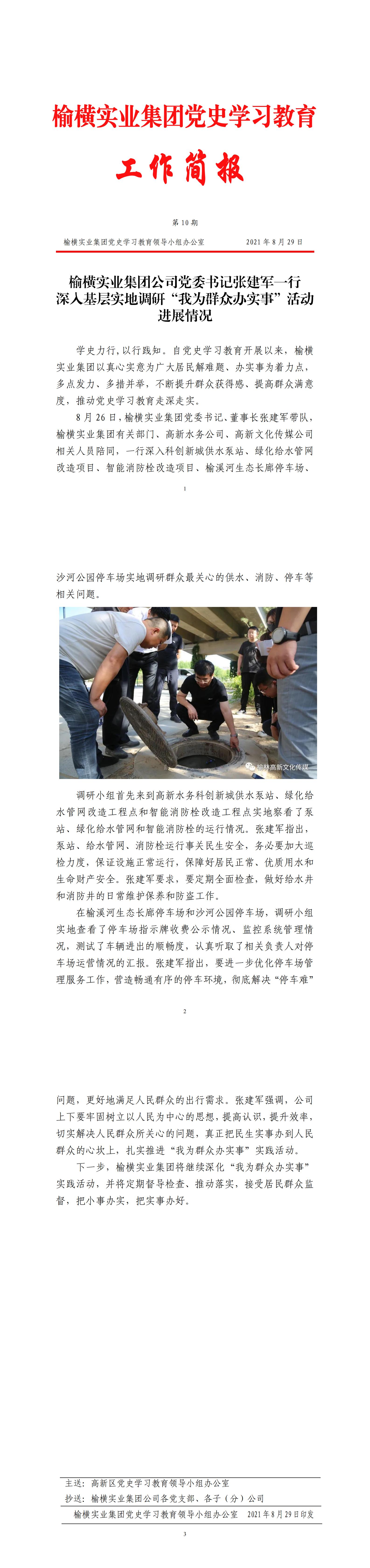 榆横实业集团公司党委书记张建军一行 深入基层实地调研“我为群众办实事”活动进展情况