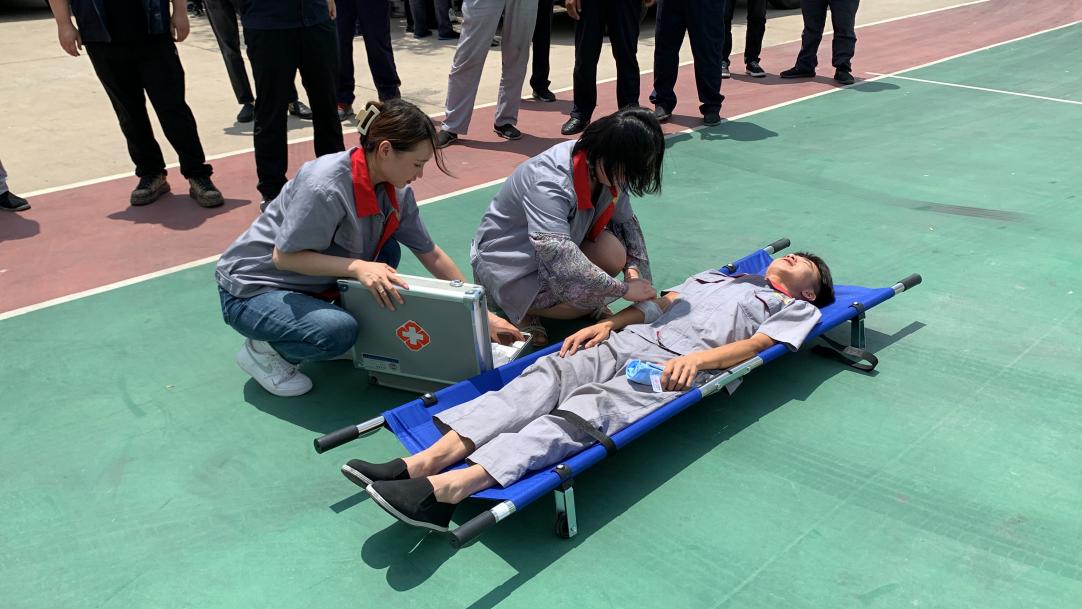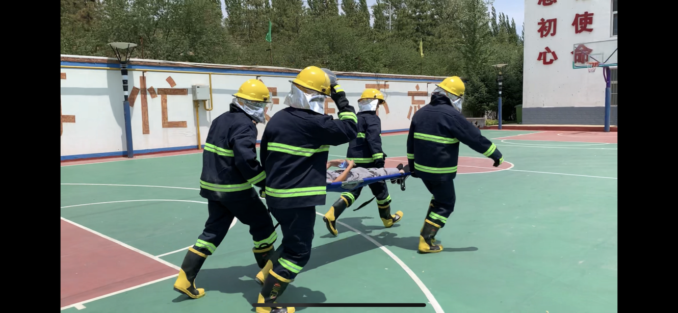 随后被困人员致烟熏昏迷为背景。灭火救援组以“微型消防站”的综合能力,从接到火警后迅速出警,快速准确地完成了灭火器灭火、担架转移被困昏迷人员等系列动作。