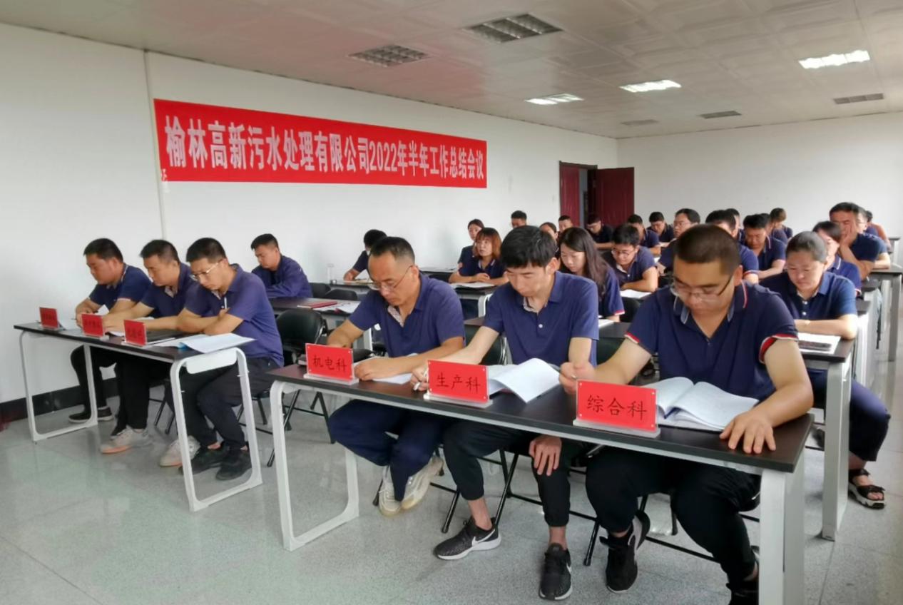 为全面总结和回顾上半年各项工作,认真分析存在的问题和不足,更好地谋划部署下半年工作,确保圆满完成年度目标任务,8月11日上午,榆林高新污水处理有限公司召开了2022年度半年工作总结及下半年工作部署会议,会议由副经理张彦青主持,经理鱼城郡在会上对2021年度工作做了全面客观的总结,对2022年上半年工作进行总结并安排部署了下半年工作,张彦青就半年安全工作做了总结,公司全体员工参加了会议。